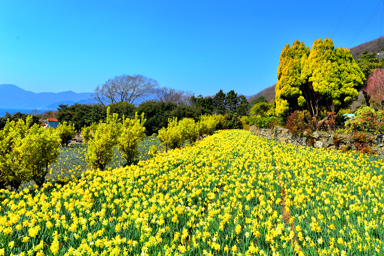 거제시의 동남쪽에 위치하며 와현해수욕장 너머, 예구마을에서도 능선을 하나 더 넘어 산비탈에서 서면 마치 산 뒤에 숨어 있는 공곶이도 빼놓을 수 없는 거제도 가볼만한곳 베스트10입니다. 맞은편에 내도가 자리 잡고 있으며, 저 멀리 해금강이 보여 탁 트인 전망을 자랑하는 곳이예요. 공곶이라는 지명은 지형이 궁둥이처럼 툭 튀어나왔다고 하여 붙여진 이름이라고 하는데요, 1957년 강명식, 지상악 노부부의 정성과 땀으로 산비탈에 16,000㎡ 되는 밭을 일궈낸 것이라고 합니다. 여기에는 동백과 수선화, 종려나무 등을 삽과 곡괭이로 수십 년 간 만들어 봄이 오면 빨간 동백꽃과 노란 수선화가 장관을 이루어 숨은 명소가 되었습니다. 내도는 외도의 안에 있다고 하여 ‘안섬, 모자섬’이라고도 부르는데 구조라선착장에서 도선으로 배를 타고 가면 됩니다. 어족이 풍부하여 낚시터로도 유명해요.