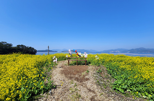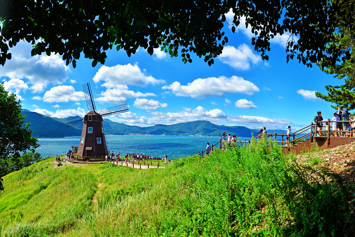 해금강 가는 길 왼쪽으로 내려가면 도장포 마을이 나오고, 그 마을 북쪽에 자리 잡은 곳으로 바람의 언덕이 나옵니다. 거제도 가볼만한곳 베스트10 바람의 언덕 원래의 지명은 ‘띠밭늘’로 불렸는데요, 2002년부터 ‘바람의 언덕’으로 바뀌어 불리고 있는 것입니다. 그 이름대로 언덕에서 바다를 바라보면 한 없이 넓고, 고즈넉하며, 시원한 바람이 상쾌함을 느끼게 해주는 봄, 여름 거제도 명소로 짊어진 마음의 짐을 바다에 던지거나 바람에 날려 보내기에 최적의 장소입니다. 이곳은 ‘이브의 화원(2003년)’, ‘회전목마(2004년)’, 영화 ‘종려나무숲(2005년)’ 등의 촬영지로도 유명해요.