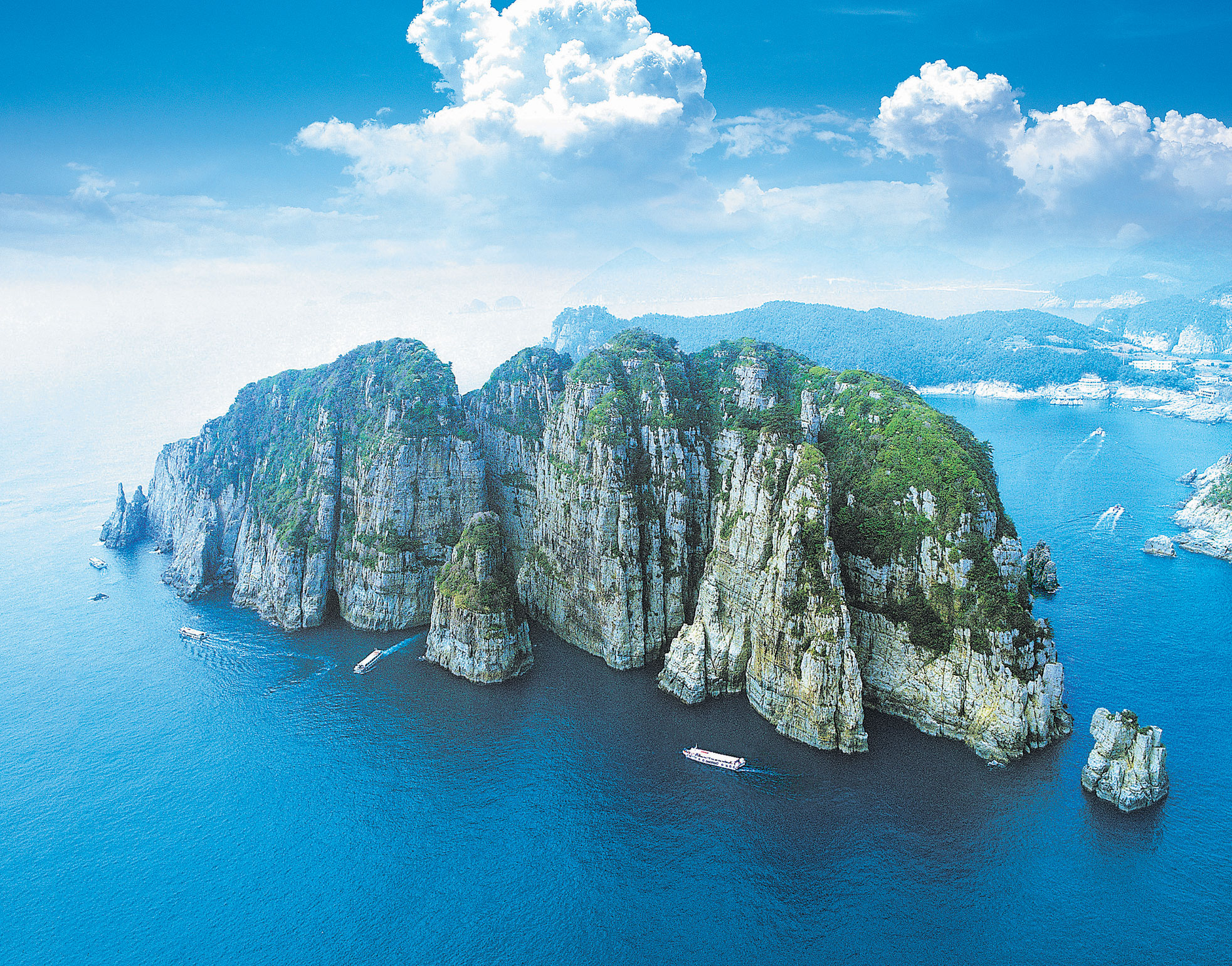 거제도 가볼만한곳 베스트10 해금강은 해금강마을 남쪽 약500m 해상에 위치한 무인도로, 지형이 칡뿌리가 뻗어 내린 형상을 하고 있다고 하여 붙인 갈도(葛島)보다는 바다의 금강산을 뜻하는 해금강이라고 널리 부르고 있는 곳입니다. 면적 121,488㎡, 높이 116m, 폭 67.3m로 한 송이 부용(연꽃)이 피어 있는 것 같기도 하고, 3개의 봉우리가 조화를 이뤄 신선 같다고 하여 ‘삼신봉’이라고 부르기도 하는데요, 사자바위, 미륵바위, 촛대바위, 신랑바위, 신부바위, 해골바위, 돛대바위 등으로 둘러싸여 있습니다. 해금강은 서불(서복)이 중국 진시황제의 불로 장생초를 구하러 왔다고 하여 ‘약초 섬’이라고도 부르는데 배를 타고 지나칠 때 이런 역사적 사실도 알고 가면 더욱 재미가 있을 것입니다.