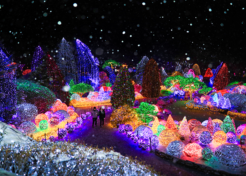 경기 가평 축령산 아래 위치한 아침고요수목원은 CNN이 선정한 ‘한국에서 꼭 가봐야 할 명소’ 중 하나로 선정되었을 정도로 국내 뿐 아니라 외국 관광객에게도 추천할만한 여행지입니다. 이곳에는 ‘오색별빛정원전’이 겨울철 야간에 개장하는데 수백만 개의 불빛으로 꾸며진 ‘하경정원’이나 푸른 바다물결을 주제로 꾸며진 ‘아침광장’ 등 각각 다른 테마정원들이 꾸며져 특히 어린 아이가 있는 가족 단위 여행객들이 가볼만한곳으로 추천해요.