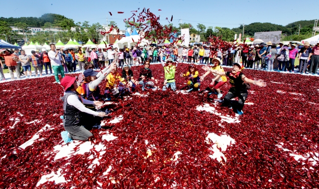 괴산 고추축제는 고추 거리 퍼레이드, 세계고추전시, 고추음식 체험, 임꺽정 선발대회 등 다채로운 프로그램으로 운영되며 축제 기간 동안 팔리는 건고추가 6만근이 넘는다고 합니다.