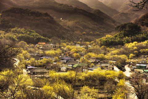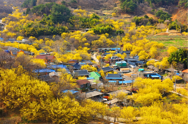 산수유 군락지와 소박한 마을이 있는 사랑길
