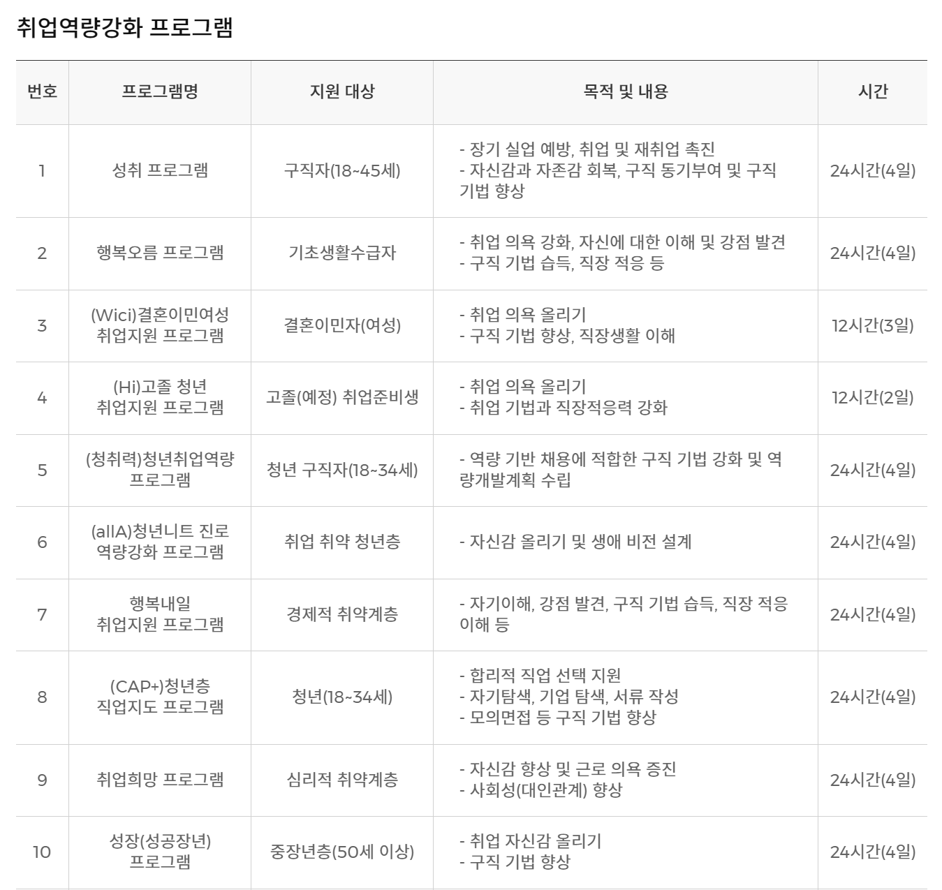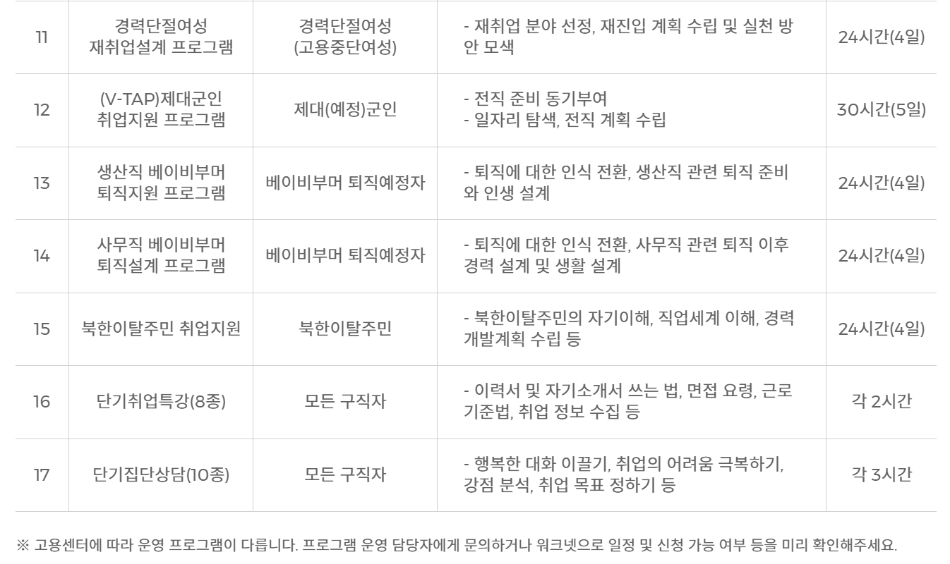 - 문의 : 국민 취업지원제도 누리집, 고용노동부 콜센터(☎ 1350)