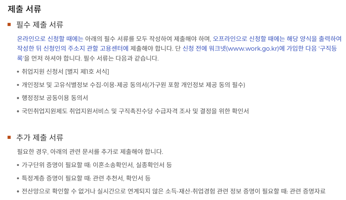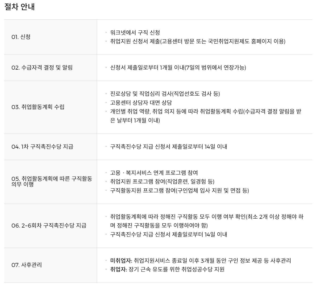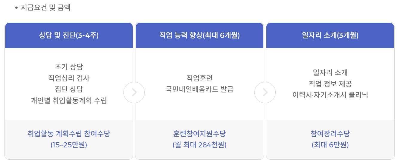 - 신청 : 국민 취업지원제도 누리집, 전국 고용센터