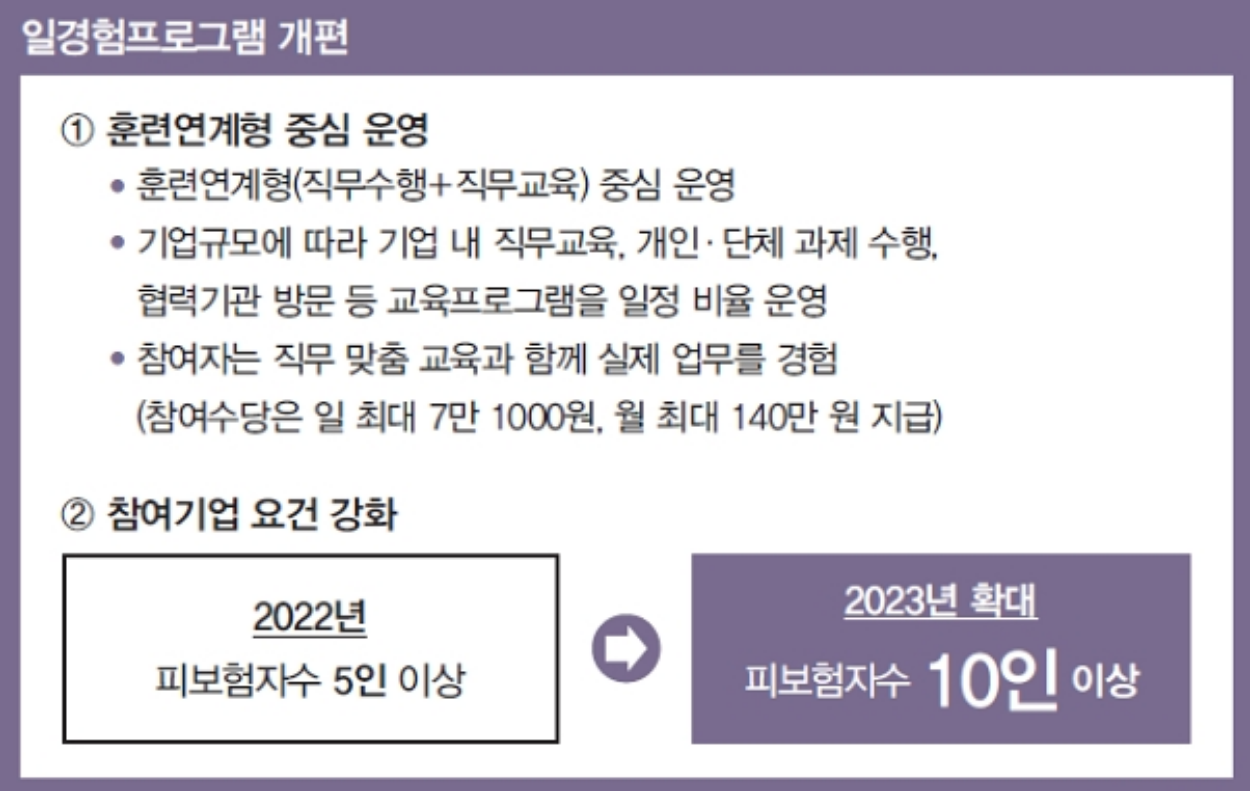 2023년부터는 일경험프로그램도 개편이 되는데요, 다음과 같은 변화가 있을 예정입니다.