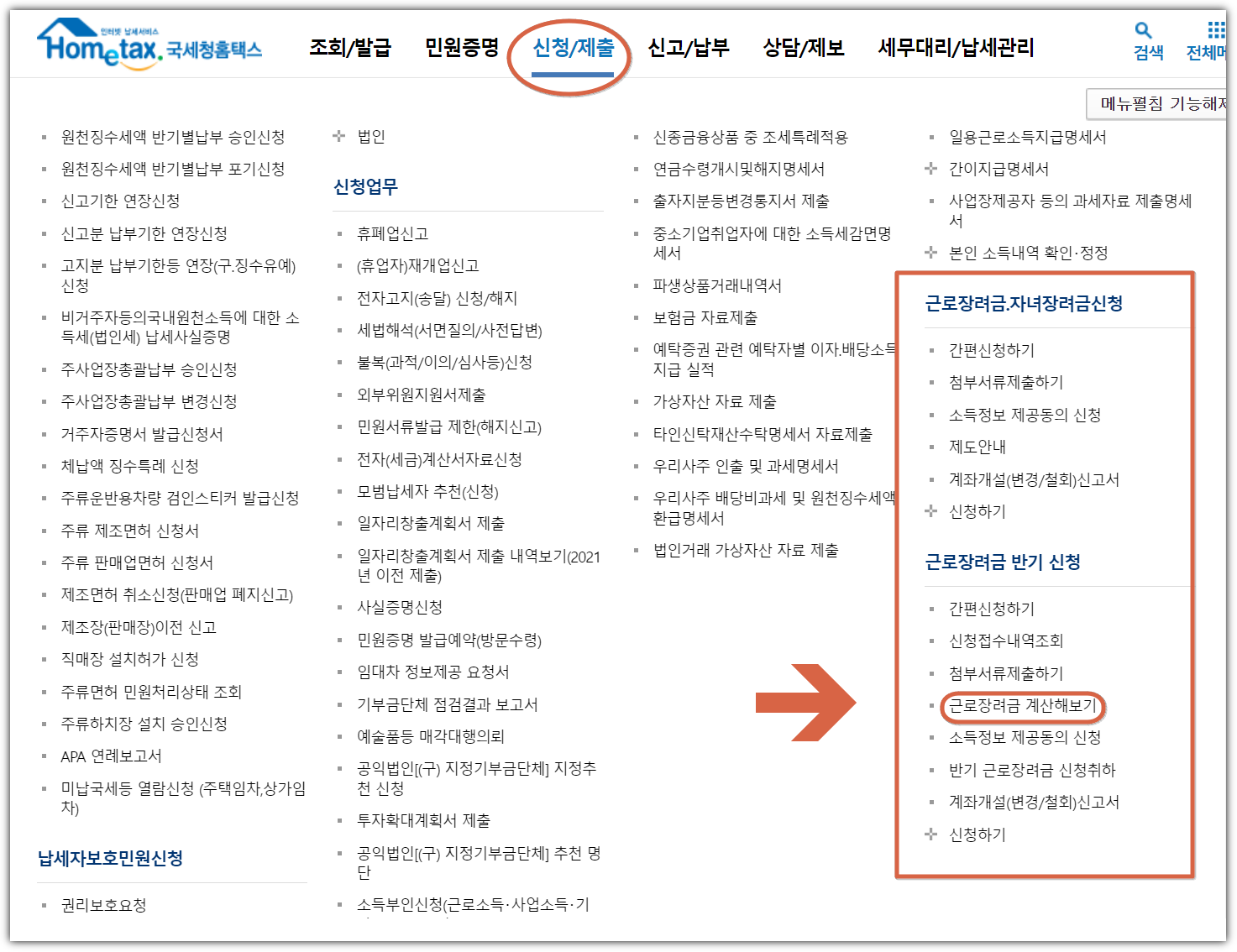 본인 소득을 확인하고 싶은 분들은 국세청 홈택스에서 [신청/제출] → [근로장려금/자녀장려금] → [반기 근로장려금] → [소득자료 확인하기]로 국세청에 신고된 본인의 소득자료 확인이 가능합니다.