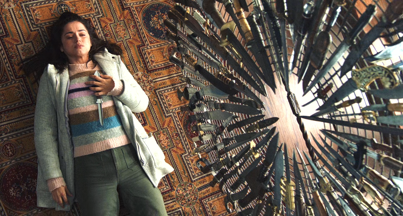 '나이브스 아웃'은 영어로는 ‘Knives Out’입니다. 그대로 직역하자면 ‘칼을 뽑다. 칼을 꺼내 들다’의 뜻인데요, 동시에 숙어로 ‘상황을 험악하게 만들다’, ‘누군가를 비난의 대상으로 삼다’로 쓰는 것으로 알려져있습니다.