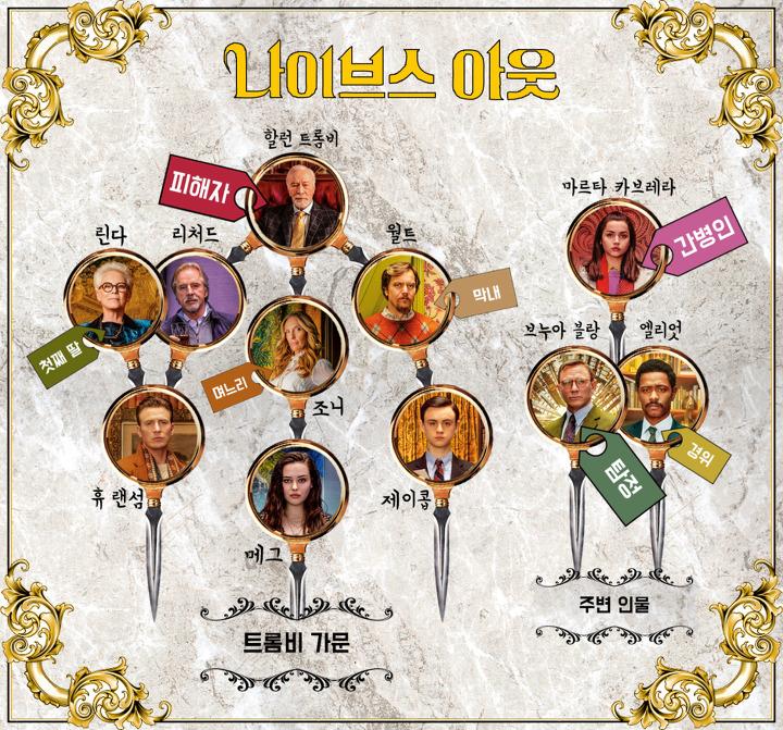 할란 가족들이 욕망과 이익을 위해서 선의를 가볍게 무시하는 추한 본성을 드러내는 와중에 마르타가 보여주는 선한 본성의 힘에 대해 생각하게 하는 영화, 나이브스 아웃 뜻 후기 줄거리 결말에 대한 소개였습니다.