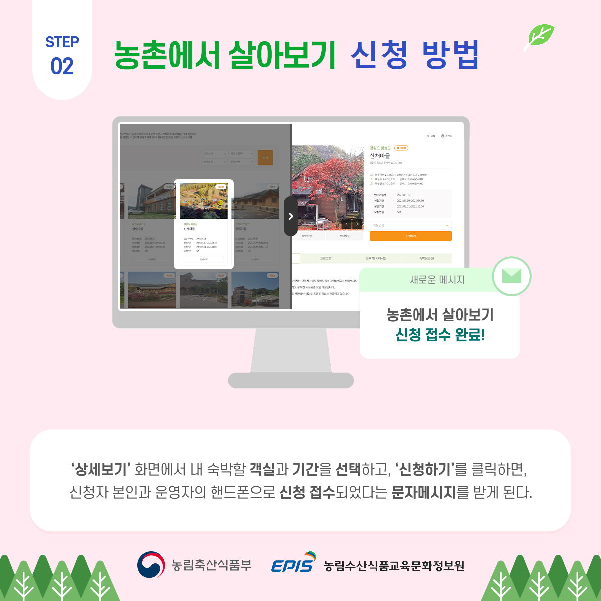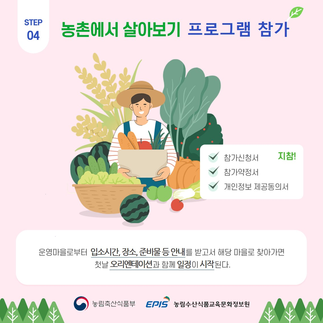 지금까지 농촌에서 살아보기 프로그램에 대해 총정리했습니다. 올해 농촌에서 살아보기 참여 시군이 총 95개로 작년보다 7개가 늘어났다고 해요. 참가자로 확정되면 다음달 14일부터 충남 부여, 전북 김제 등을 시작으로 전국 110곳의 운영 마을에 입주하게 되는데요, 참고로 프로그램 참가자는 모두 입소 하루 전 신속항원검사나 PCR 검사로 코로나19 음성 확인을 받아야 입소할 수 있다고 하니 주의하시기 바랍니다. 농촌에서 살아보기를 통해 희망하는 지역에 직접 살아보는 기회를 가지고 새로운 환경에 적응하기 전의 두려움과 시행착오를 줄이는 등 농촌 이주에 관심을 갖고 계신 분들에게 도움이 되었으면 합니다.
