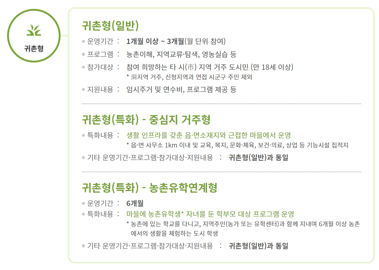 (일반, 특화: 농촌유학 연계형, 중심지 거주형)