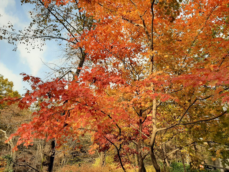 단풍은 일반적으로 일 최저기온이 5도 이하로 내려가면 물들기 시작합니다. 그런데 올해는 지난해보다 1일, 평년보다는 2일 늦게 단풍이 시작되었으며 2009년부터 당단풍나무의 단풍 드는 시기가 매년 약 0.33일씩 늦어지는 경향을 보이고 있는 추세라고 하네요. 이는 7∼9월 평균기온 상승에 원인이 있는 것으로 분석되고 있는데요, 산지별로 단풍 시작이 발표되는 시점은 산 전체가 정상에서부터 20%가량 물들었을 때를 기준으로 합니다.