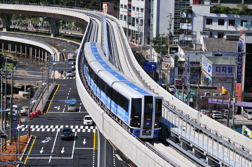 모노레일은 유지 관리비 등의 단점이 있는데다 차량 제작사인 일본 히타치사에서 국내 철도안전법에 나와 있는 차량 형식 승인을 면제를 해 달라고 요구했다고 합니다. 그러나 국내 철도안전법 형식 승인 면제가 안 된다는 의견에 따라서 최종적으로 참여를 못 하겠다고 통보가 왔고 최종적으로 전문가 자문을 거쳐서 가장 적합한 AGT 방식으로 철제차륜을 변경했다는 설명입니다.