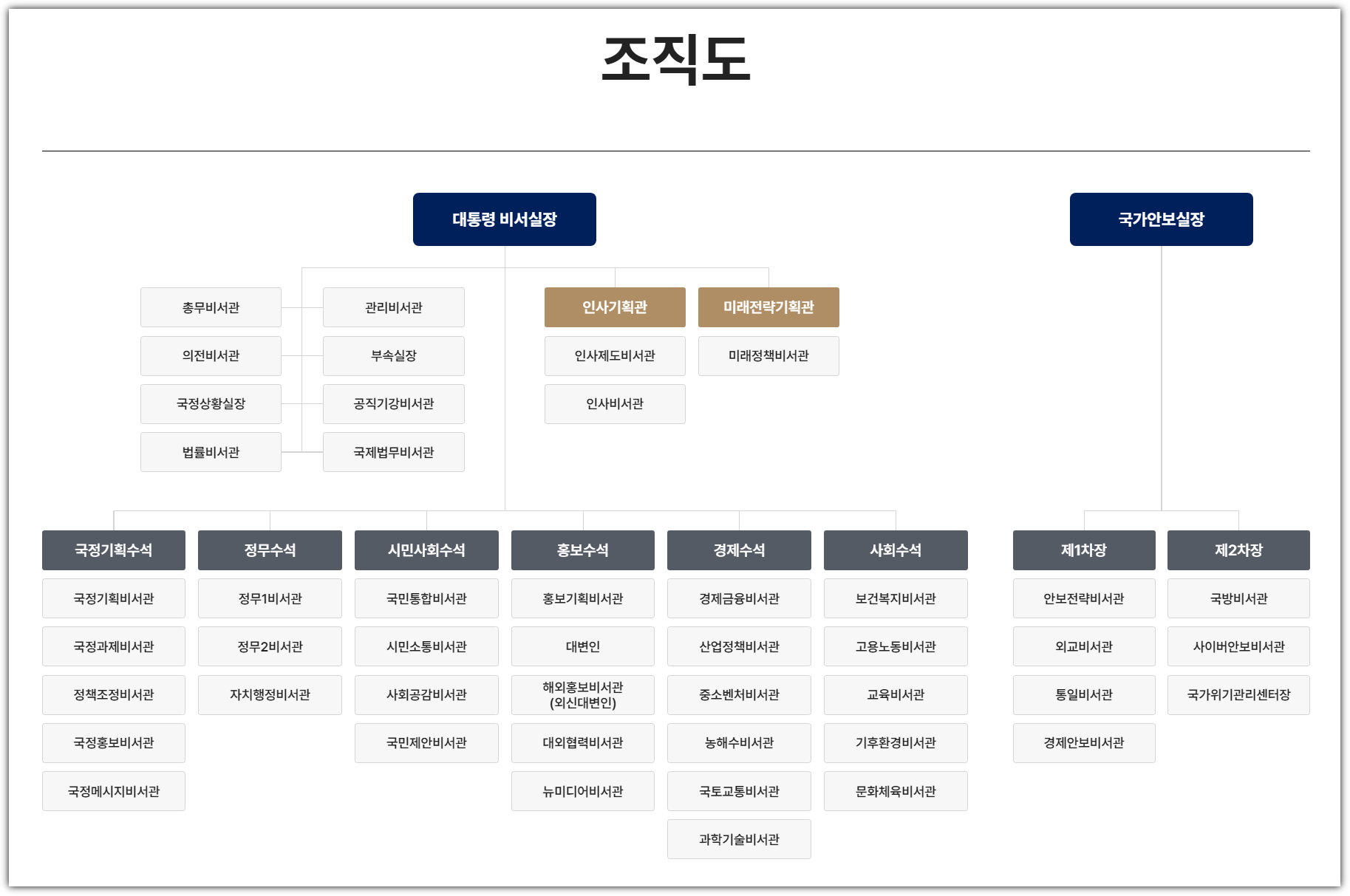 종종 비서실에서 물러난 이들을 다시 모아두는 역할을 하기도 했으나 윤석열 정부에서는 특별보좌관 인선을 밝히지 않았습니다. 다만, 김창경 한양대 창의융합교육원 교수를 교육과학기술특보로 비공식 임명하였고 이동관 전 청와대 홍보수석을 대외협력특별보좌관에 임명했습니다.