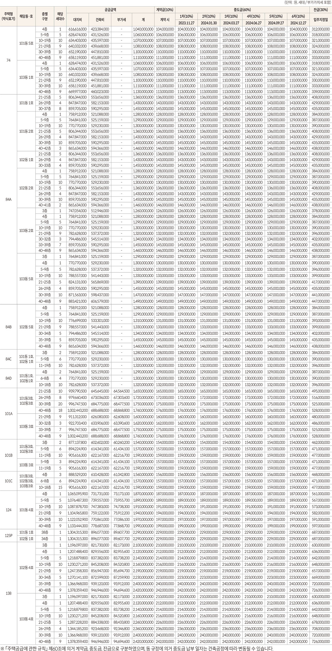 124타입 44세대 19억 9,000