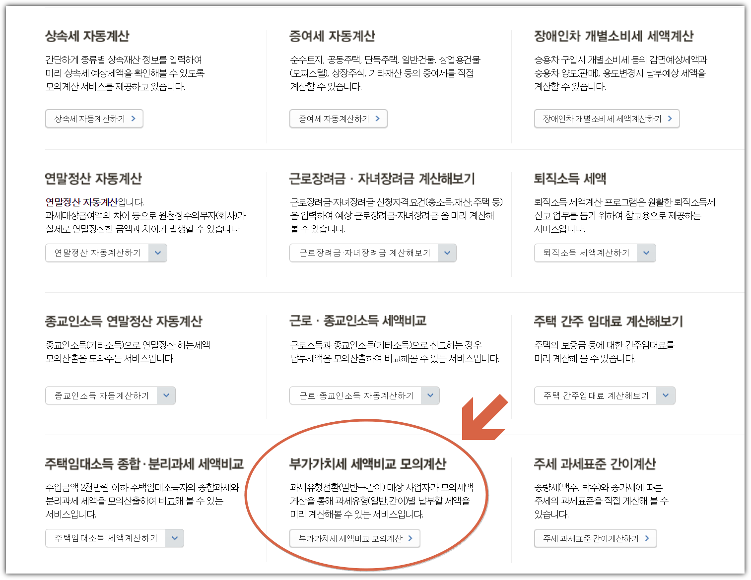 조금 더 정확한 부가세 계산기를 원하는 분들이라면 국세청에서 제공하는 부가가치세 세액비교 모의계산을 사용하시는 것이 좋을 것 같습니다.