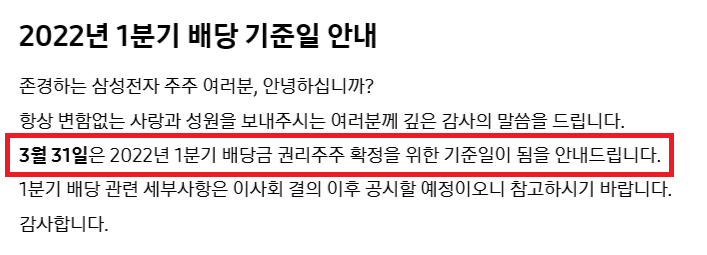 2022년 삼성전자 배당금 지급일