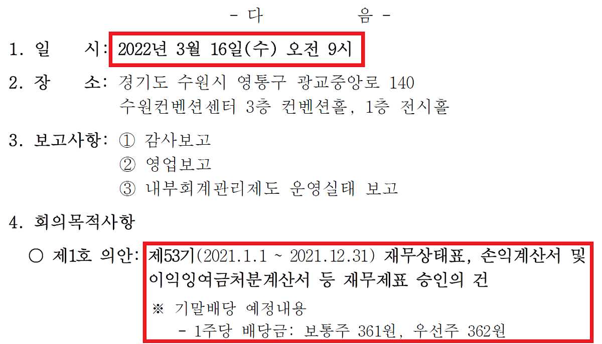 참고로 올해는 12월 27일까지 삼성전자의 주식을 매수하게 되면 1주당 361원의 배당금(예상)을 2022년 4월 17일에 지급받을 수 있는 것입니다.