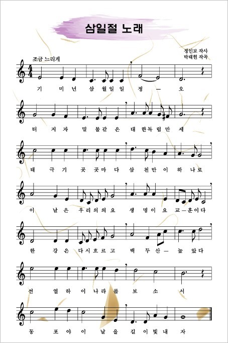 삼일절 노래는 시민들에게 이름조차 생소한 노래일 수 있습니다. 그러나 그 가사를 읽어보면, 고개를 끄덕이게 됩니다.