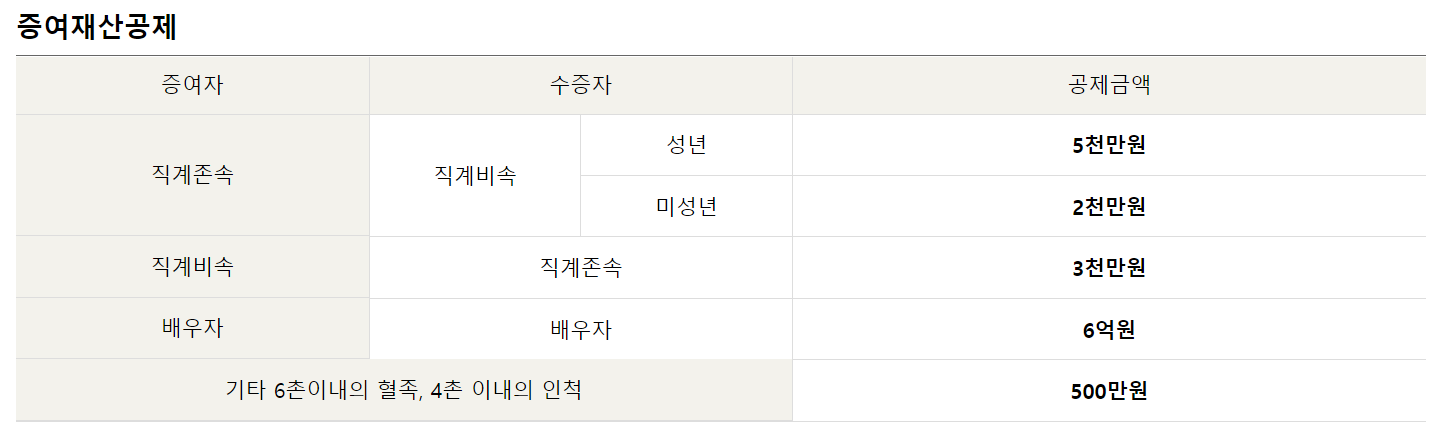 3억원 x 증여세율 20% - 누진 공제액 1000만원 = 증여세 5000만원