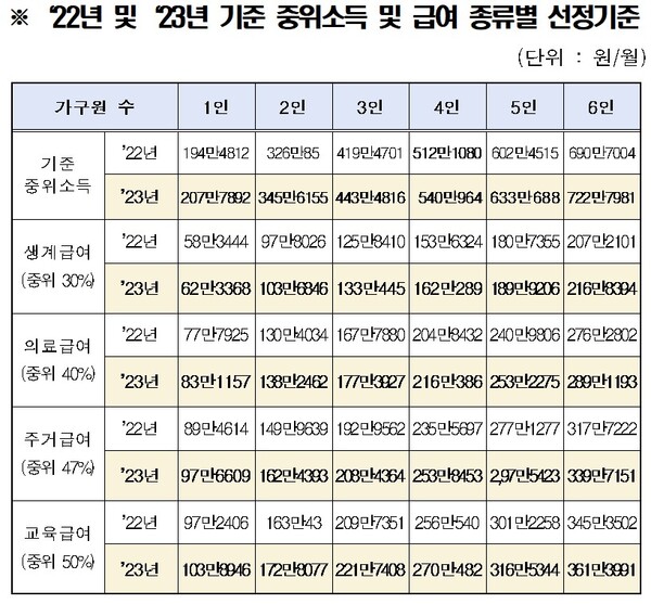 2023년 생계급여 자격 달라지는 부분