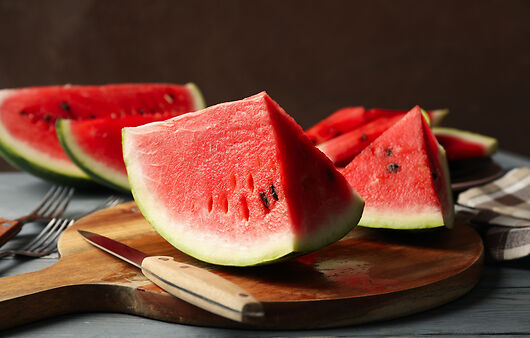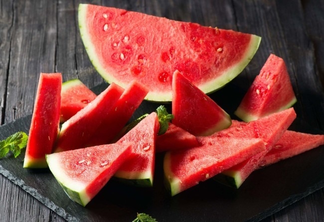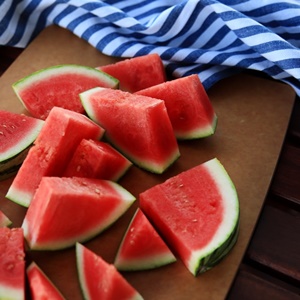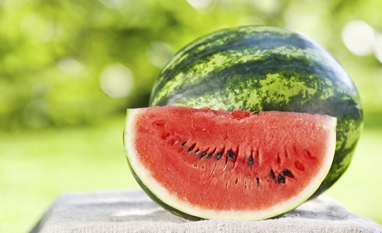 수박은 무려 94%가 수분이라고 해요. 또한 수박의 단맛을 내는 과당과 포도당도 많이 함유되어 있어 무더운 계절에 갈증을 풀어주는 역할도 하는데요, 이와 더불어 피로를 해소하는 데 도움을 주고 비타민이 많이 들어있으며, 칼로리가 높지 않아 다이어트에도 좋은 음식입니다.