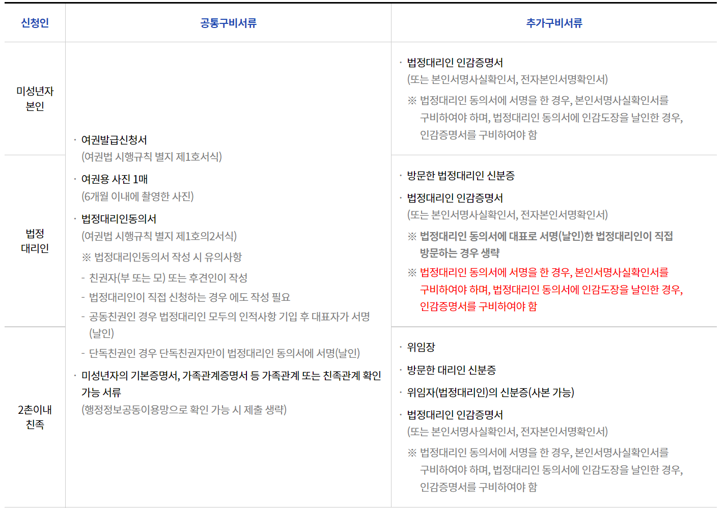 만 18세 미만 미성년자의 경우 부모님이 대신 신청하는 경우가 많을텐데요, 이 때 법정대리인동의서 작성이 필요합니다. 다음과 같은 주의사항이 있어요.