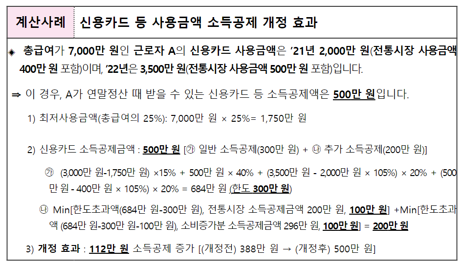 연말정산 신용카드공제 계산법 예시2