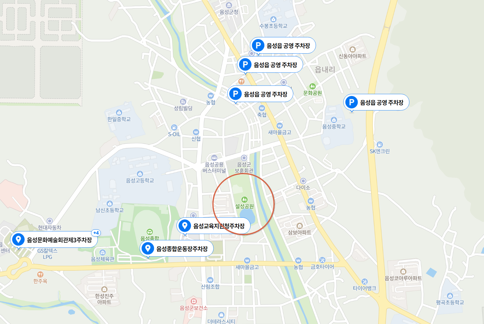 음성중학교, 음성고등학교, 한일중학교, 문화예술회관, 음성종합운동장, 반다비국민체육센터