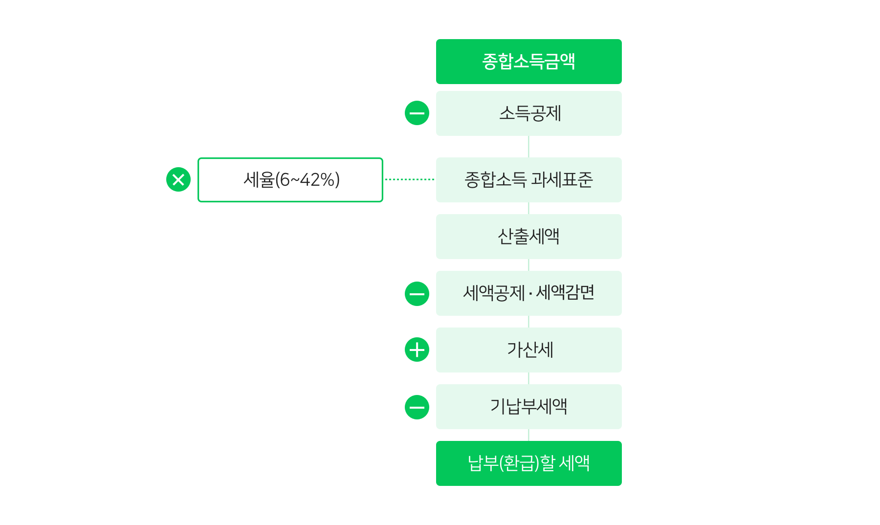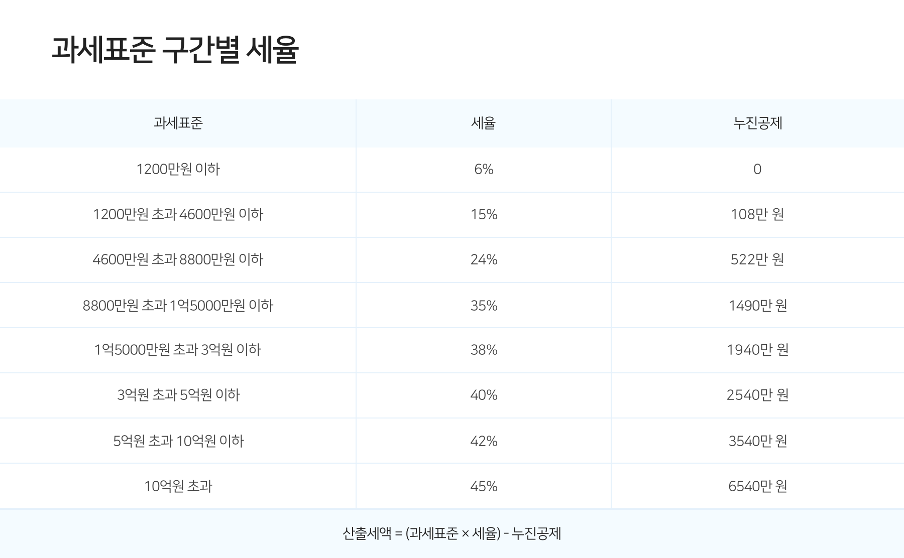 종합소득 과세표준 x 세율(6~42%) = 산출 세액