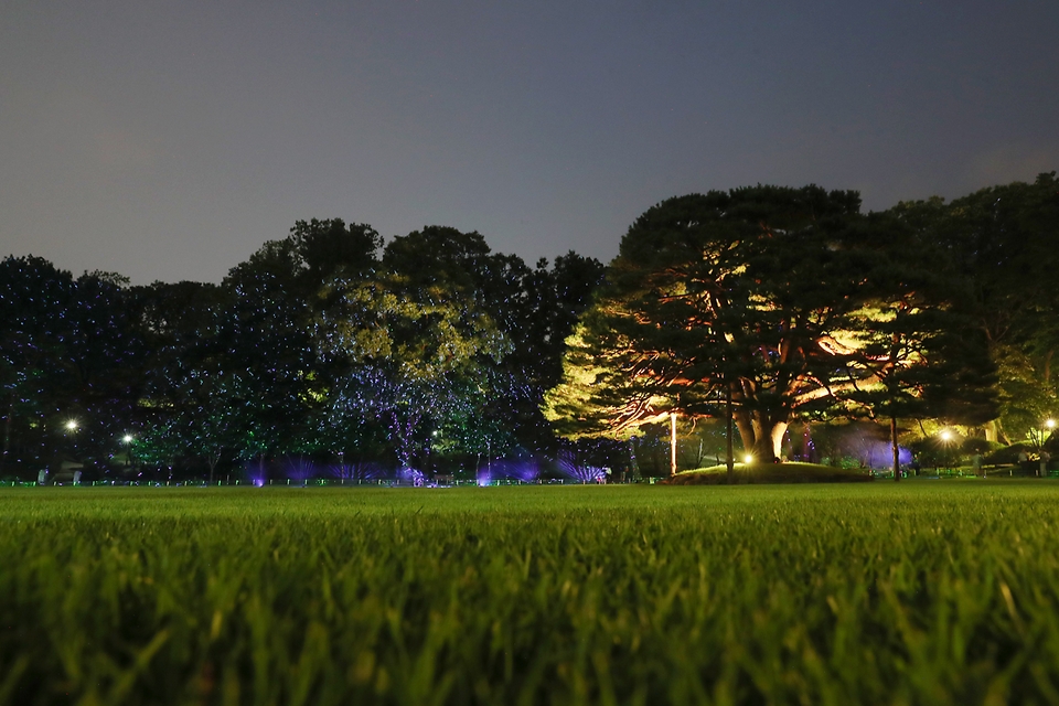 국내외 귀빈에게 우리나라의 전통 가옥 양식을 소개하거나 의전 행사, 비공식회의 등을 진행하던 장소입니다. 특히 녹지원은 청와대 경내에서 가장 아름다운 공원으로 알려져 있는데요, 120여종의 나무와 역대 대통령 기념 식수가 있으며, 어린이날 행사 등이 펼쳐진 공간이라고 해요. 아름다운 레이저와 조명이 비춰진 반송등을 관람 할 수 있습니다.