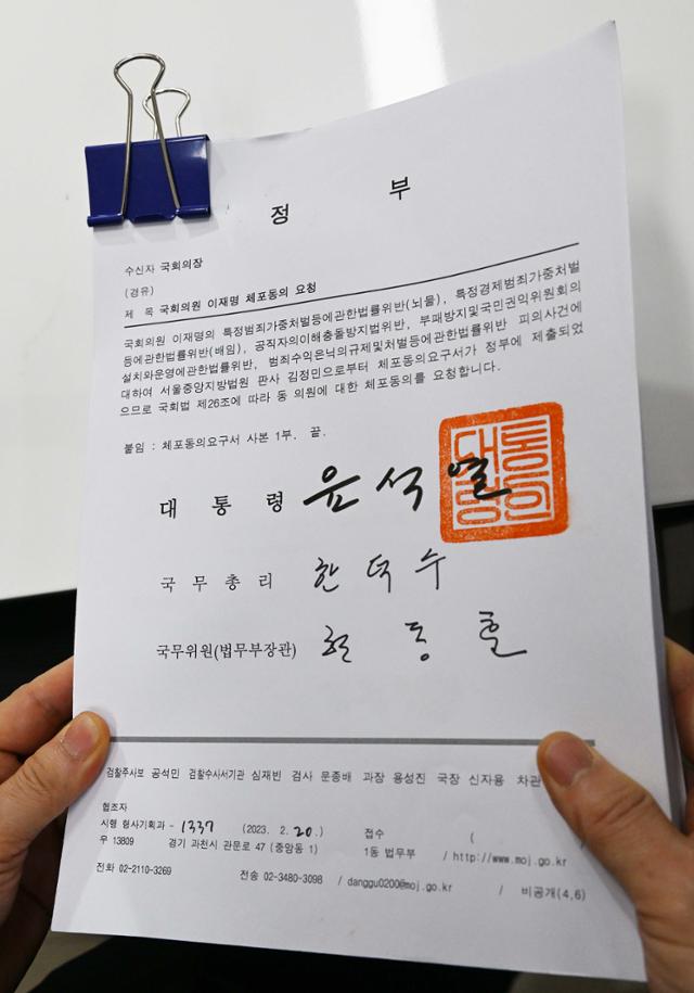 윤 대통령이 대검찰청과 법무부를 거쳐 제출된 체포동의요구서를 결재해 허가했다는 의미이며 체포동의안은 24일 국회 본회의 보고를 거쳐 오는 27일 본회의에서 표결이 이뤄질 예정입니다.