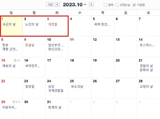 추석 대체공휴일 추석 연휴 대체휴일 (2023년 10월 2일 임시공휴일) 연차 수당