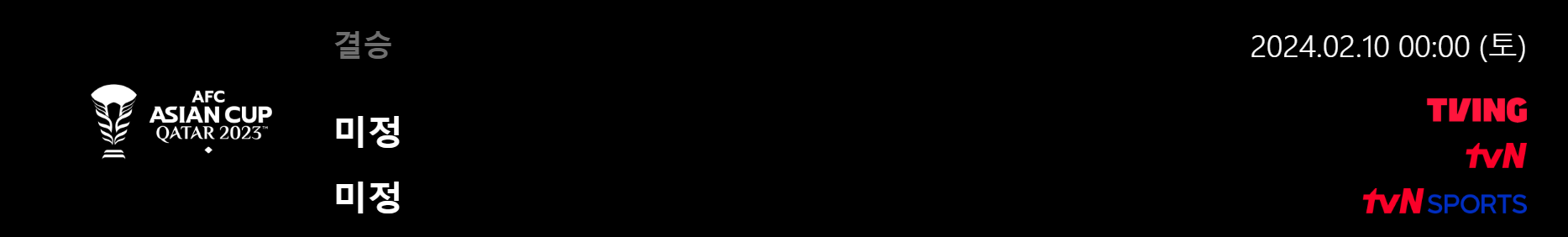 축구 결승전 일정은 한국시간으로 설날 다음날인 2월 11일 0시입니다. 연휴 중간에 경기가 열리는 만큼 TV 시청이 매우 용이한 시간대라고 볼 수 있습니다.