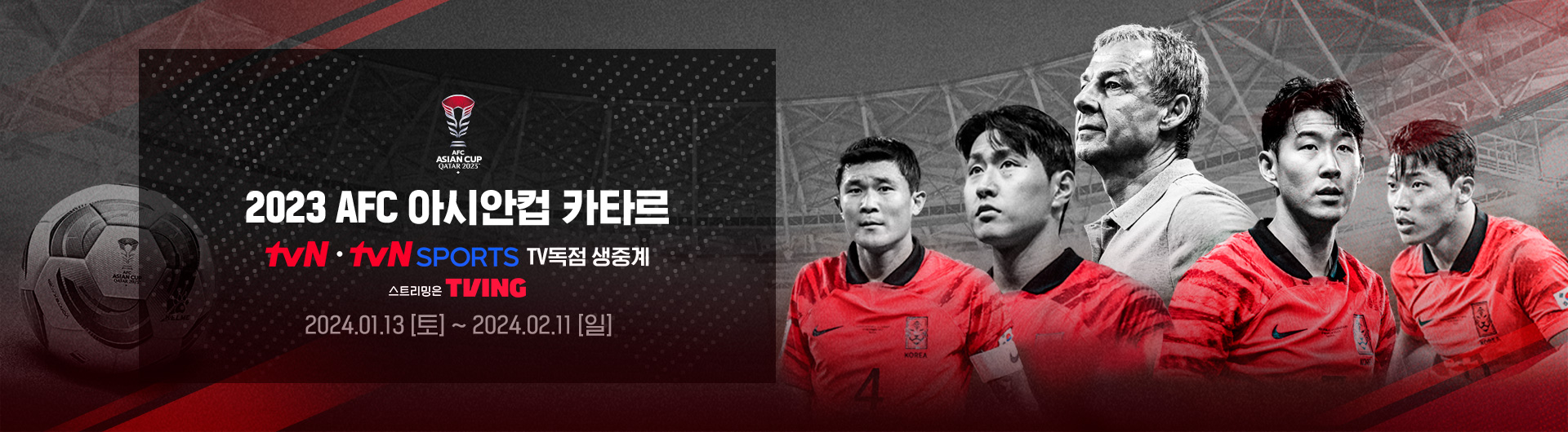 축구 결승전 TV 생중계 채널은 tvN과 tvN SPORTS에서 2월 10일 오후 11시 40분부터 '2023 AFC 아시안컵 카타르 결승전'을 독점 생중계합니다.