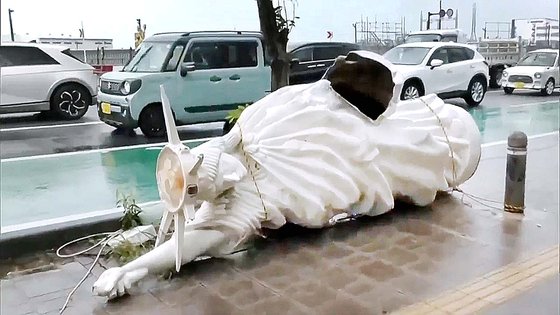 태풍 카눈 속도는 느리지만 중심 부근에는 초속 35m, 시속 126km에 달하는 위력을 지니고 있는데요, 이는 달리는 열차가 탈선할 정도의 강력한 위력입니다.