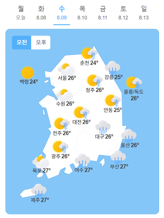 먼저 수요일과 목요일은 전국에 비가 올 것으로 보이는데요, 영동과 영남, 일부 내륙에는 초속 25m 이상의 강한 비바람이 몰아칠 것으로 보입니다. 이 날 태풍 특보가 내려질 것으로 보이는데 특히 수요일 밤부터는 태풍 영향권에 드는 제주도와 남해안 일부 지역에 비바람이 강해질 것이라는 예측입니다.