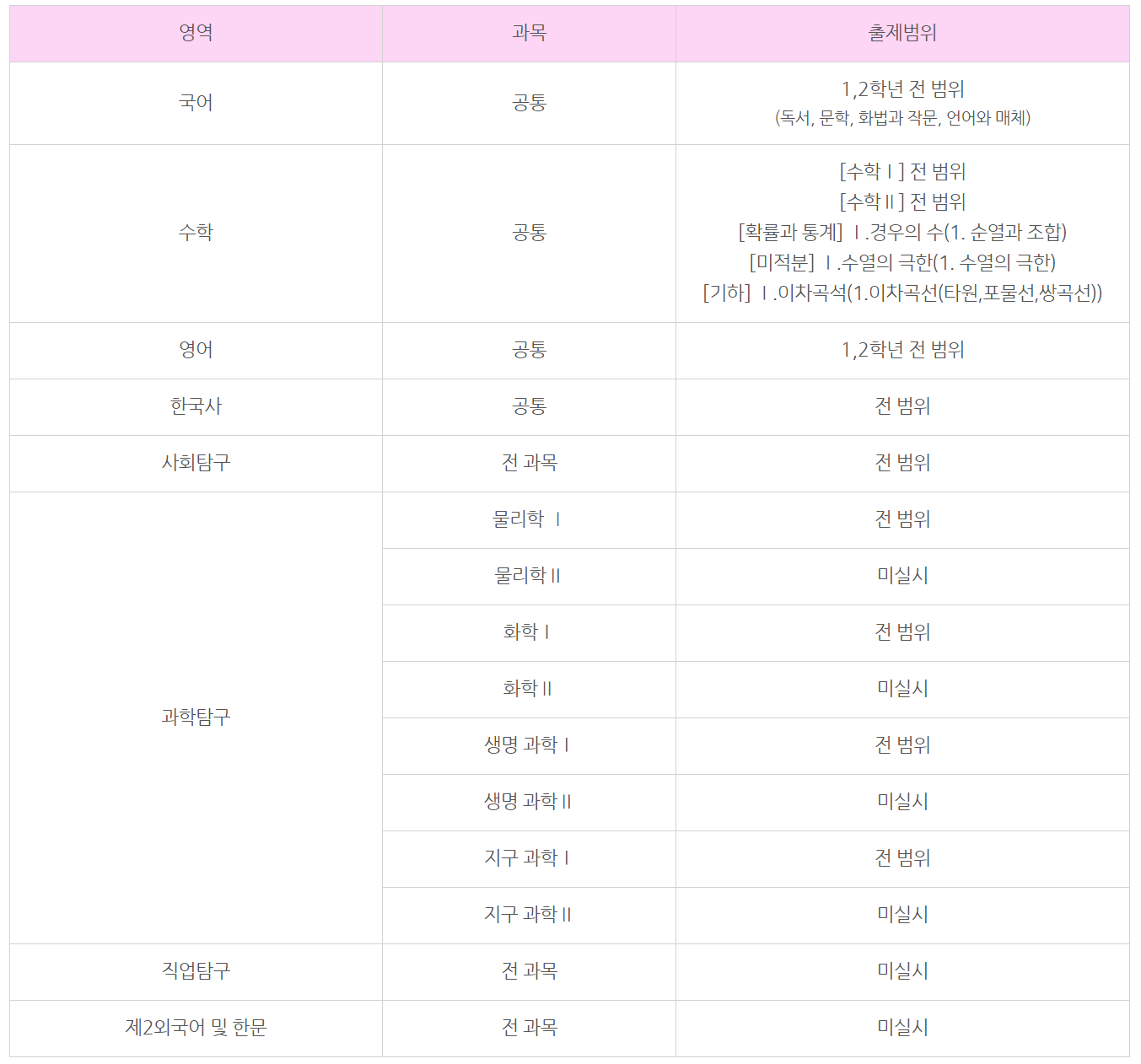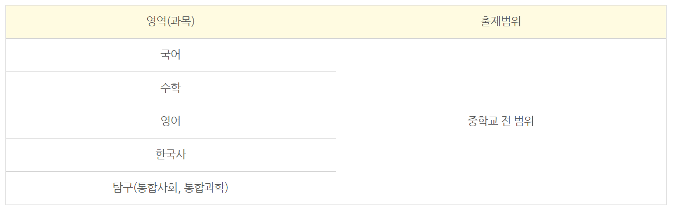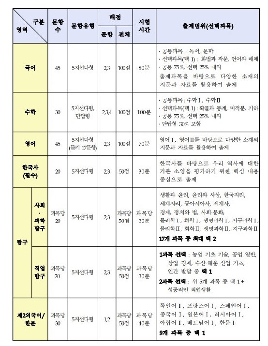 시험영역 : 국어, 수학, 영어, 한국사, 사회·과학탐구
