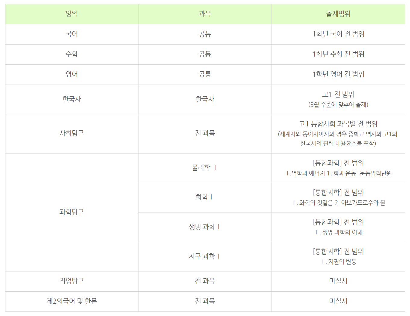 고1 3월 모의고사 (2023년) 범위