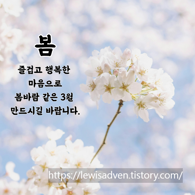 칙칙했던 겨울 기운은 모두 날려보내고 생기가 가득 찬 봄을 맞이하시길 바랍니다. 행복한 3월 보내세요.