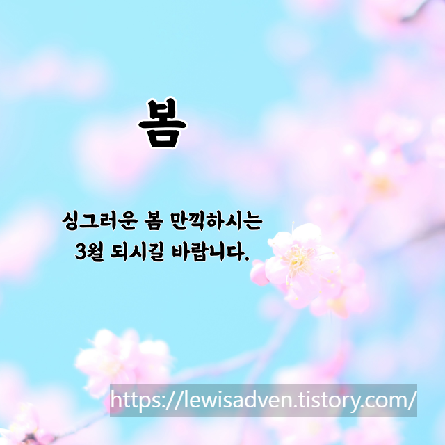 ● 칙칙했던 겨울 기운은 모두 날려보내고 생기가 가득 찬 봄을 맞이하시길 바랍니다. 행복한 3월 보내세요.
