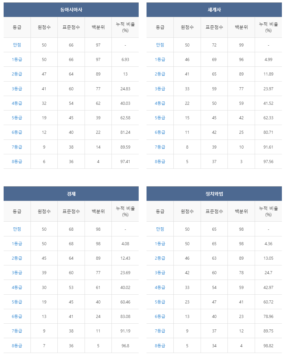 4교시 한국사 영역 및 사회・과학・직업탐구 영역(14:50~16:37)