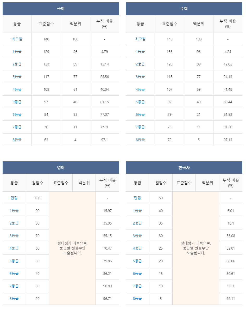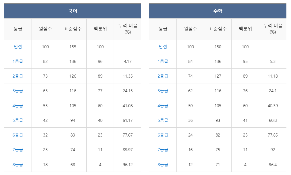 9월 모의고사 등급컷 (2022년 등급컷 참고자료, 2022.08.31. 실시 )