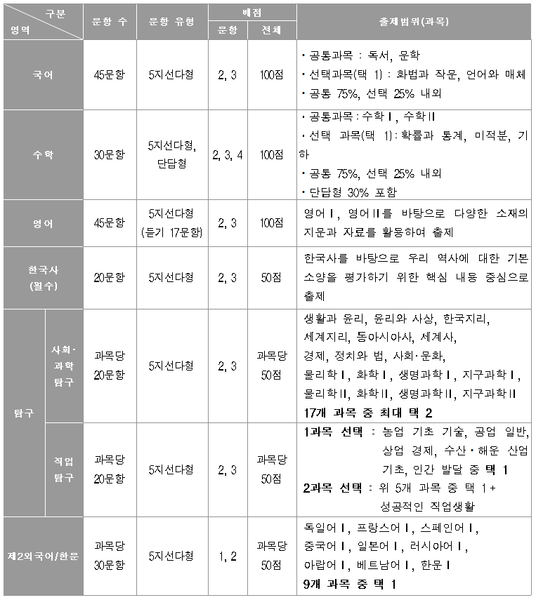 대상 고3·졸업생·검정고시 합격자 (한국교육과정평가원) / 고1, 2 (인천광역시교육청)