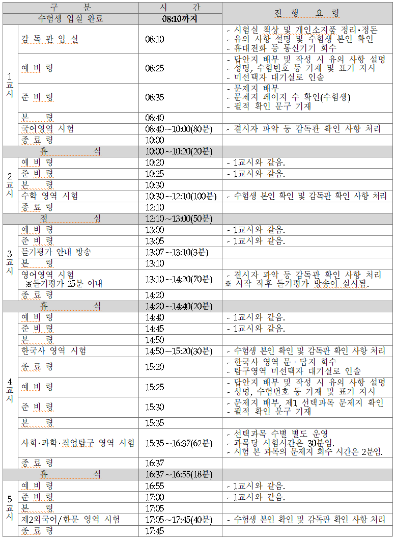 5교시 제2외국어/한문 영역(17:05~17:45)